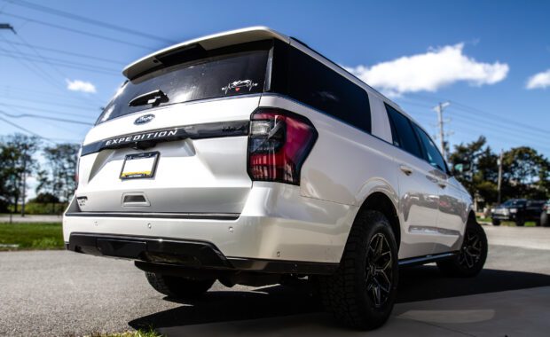 Project Details Vehicle: 2019 Ford Expedition Max Limited Engine: 3.5 L V6 24-valve DOHC Turbocharged Wheels & Tires: 18X9 +20 Fuel Flux Gloss Black DDT | 275/65R18 Falken Wildpeak AT4W Job Number: 36316 Build Gallery